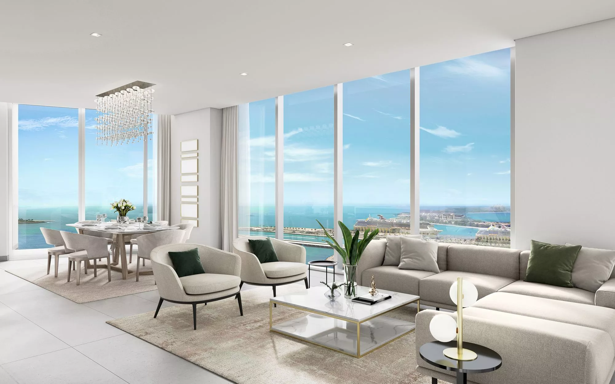 Architectural Design: The tower’s contemporary architecture is crafted to maximize waterfront views, featuring floor-to-ceiling windows and expansive balconies that invite ample natural light.