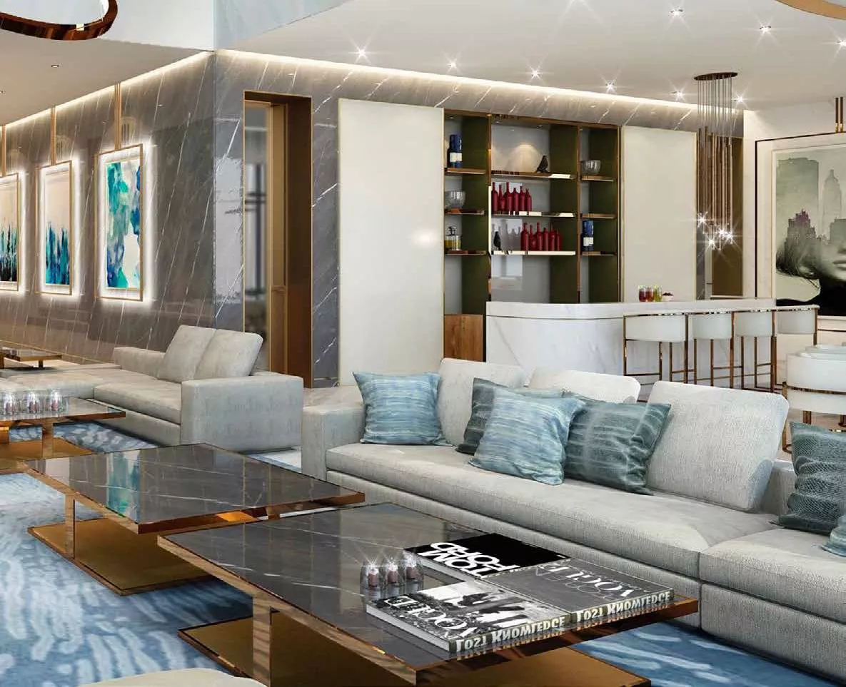 The area of properties available for purchase ranges from a generous 858 sq. ft to a colossal 19,543 sq. ft. Apart from loft units, all properties here come with a balcony, overlooking the Dubai Canal, while penthouse owners will also appreciate an office, a media room, a pool area and terraces, a jacuzzi, a private gym, as well as a sauna and a steam room, among other key features in each residence. Not forgetting that penthouse occupants will be able to enjoy private entertainment on the upper levels – a pre-function room and an open-plan sky lounge of 6,286 sq. ft.